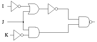The applet accessible through the link below allows the user to investigate simple combinational circuits that involve NOT, AND, OR, NAND, NOR and XOR gates. (XNOR is not included but may be easily simulated by attaching a NOT gate to the output of an XOR gate.) Right clicking in the background brings up a menu which includes the six types of gates listed above as choices. Selecting a gate type creates a new gate of that type on the applet canvas. The gates may be "dragged" around the canvas using the mouse. Note that a newly created gate is placed in the upper left corner of the canvas. If you create several gates in a row without moving any of them, you'll only see the first one. (The others will be hidden "underneath" the first gate.) The popup menu mentioned earlier also allows the user to add a connection. This choice brings up a dialog box which requires the user to specific the gate at whose output the new "wire" will start. The point at which the new wire will end must also be specified. This specification requires both an input line number and a gate label. Input number 1 always refers to a gate's upper input in the diagram, input 2 refers to the lower input. (The single input of a NOT gate is, of course, assigned the number 1.) Connections (or wires) in the diagram have draggable handles which give the user a little bit of control over the appearance of the schematic. (In particular, it's usually desirable to use this control to reduce or if possible eliminate wire crossings.) You should only create connections which go from left to right in the diagram. (For example, if gate A3 is further to the right on the canvas than gate O2, do not try to add a connection from the output of gate A3 to one of the inputs of gate O2.) More importantly, you should not try to connect two different outputs to the same input. (However, it is perfectly legal to connect a single output to more than one input.)