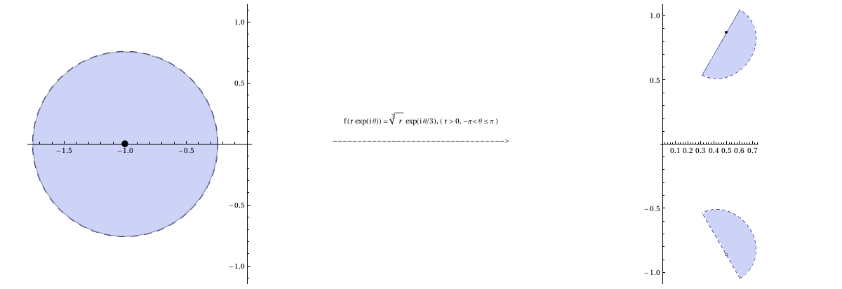 A neighborhood of -1 and its image under a cube root map which is discontinous on the negative reals: